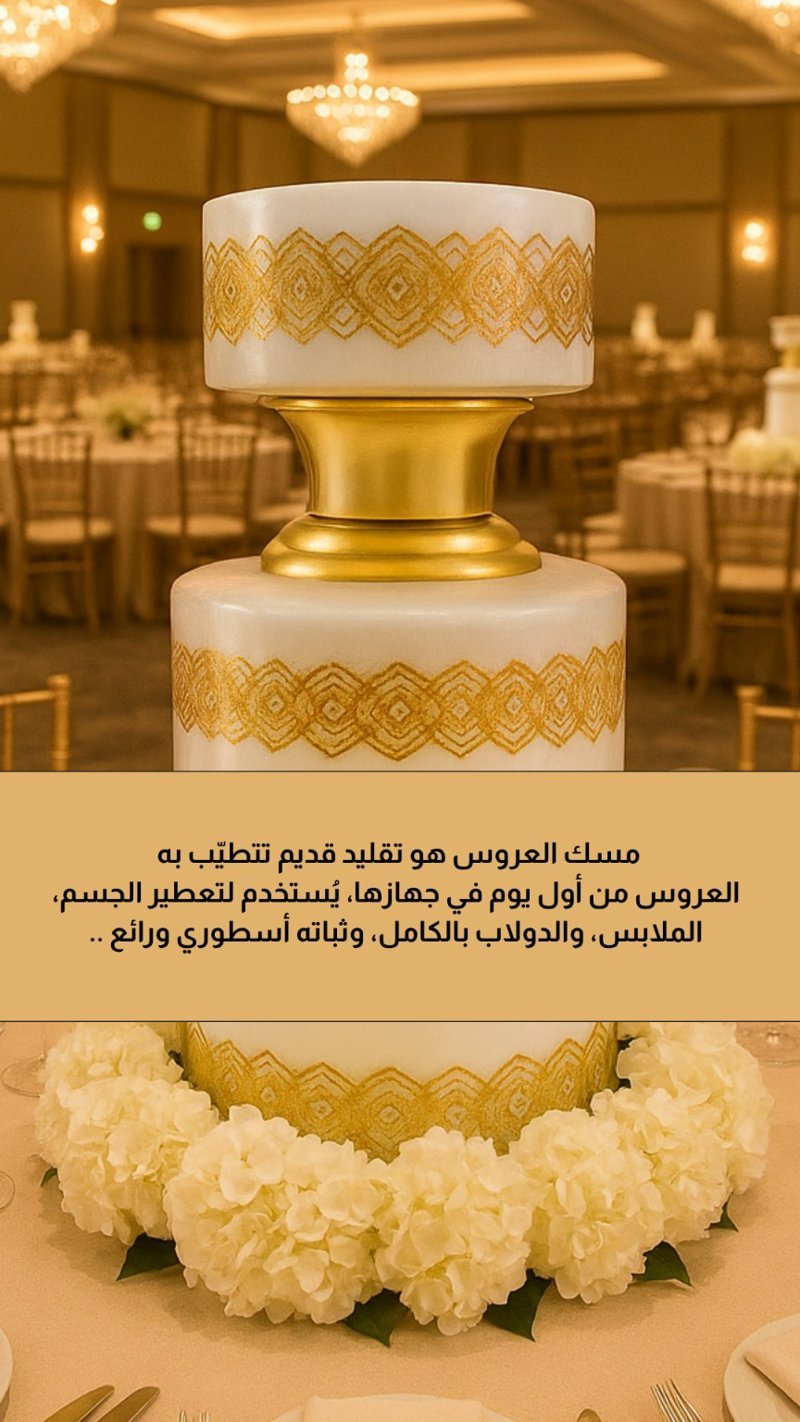 مسك العروس يختلف عن أي مسك آخر، ما هو فقط رائحة نظافة ولا رائحة نعومة، هو رائحة حضور، فخامة، وطمأنينة.