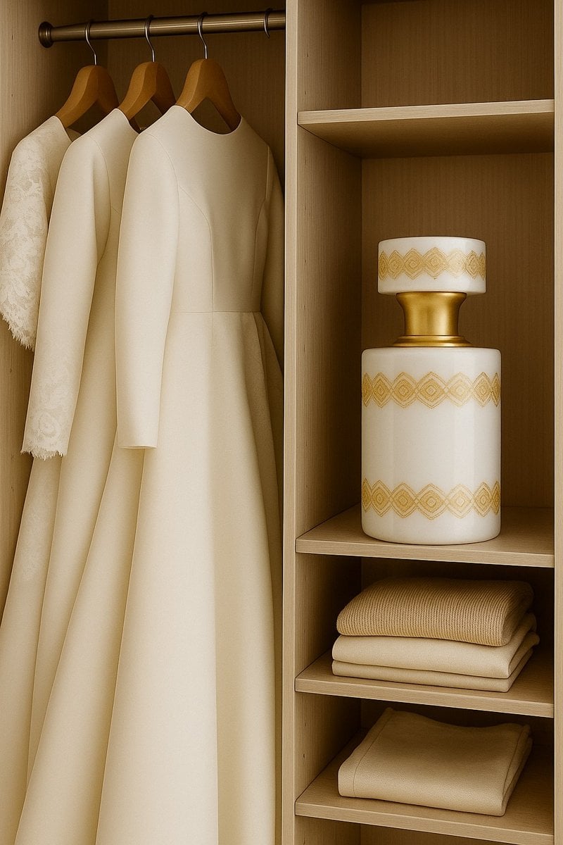 وفي كل مرة تفتحين دولابك وتشتمين الأثر، تعرفين إن الرائحة مو بس عطر، الرائحة شعورك يوم لبستي فستانك الأبيض، وسحبتِ أول نفس كزوجة.